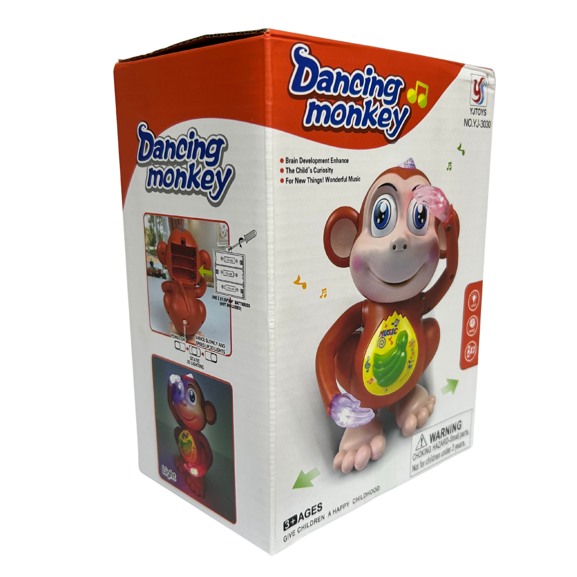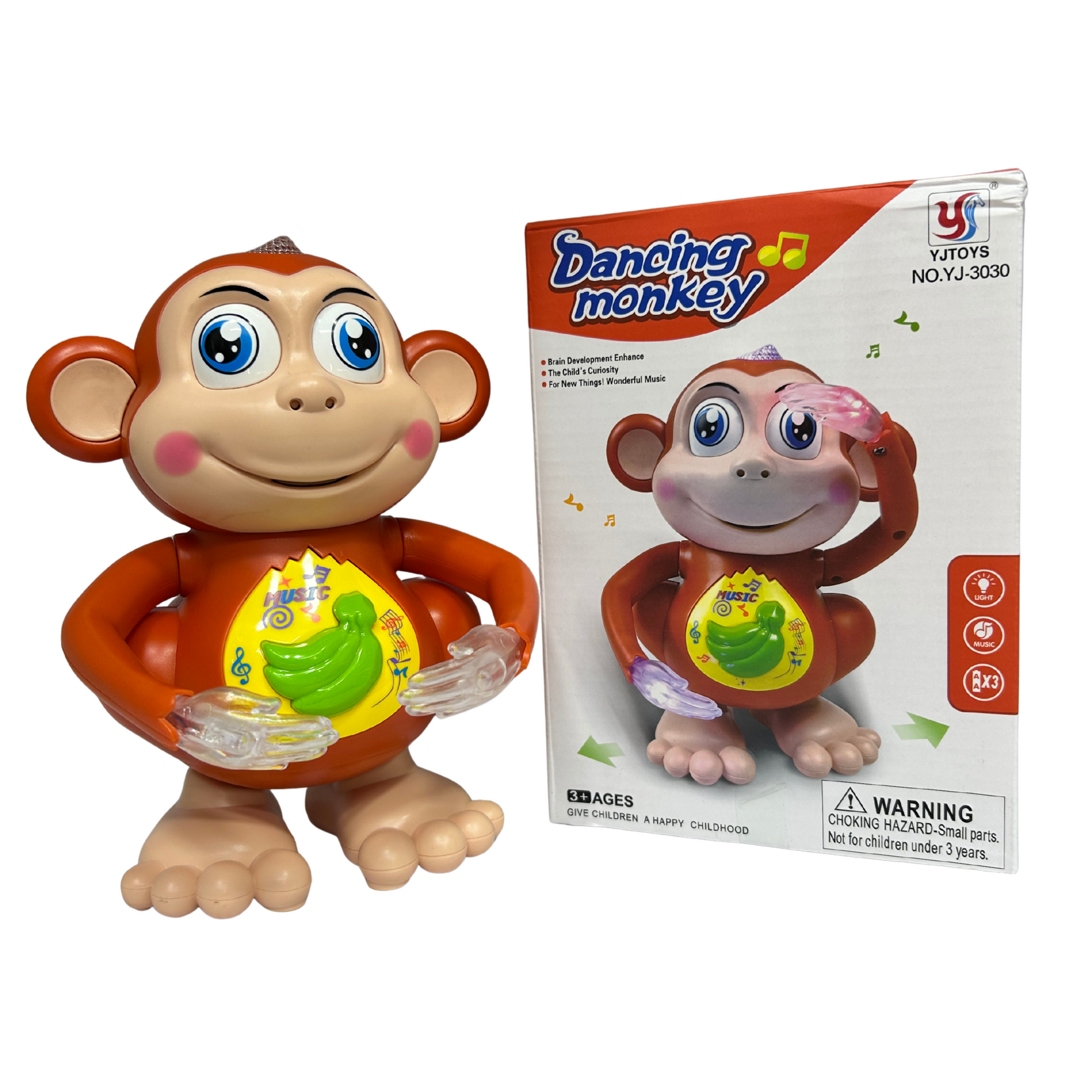 ¡Diviértete con este simpático mono bailarín que no deja de moverse! Este juguete interactivo cuenta con movimiento dinámico, luces llamativas y sonidos divertidos que capturan la atención de los niños. Al presionar su botón, el mono comienza a bailar al ritmo de la música mientras sus manos y cabeza se mueven, creando un espectáculo alegre y entretenido.